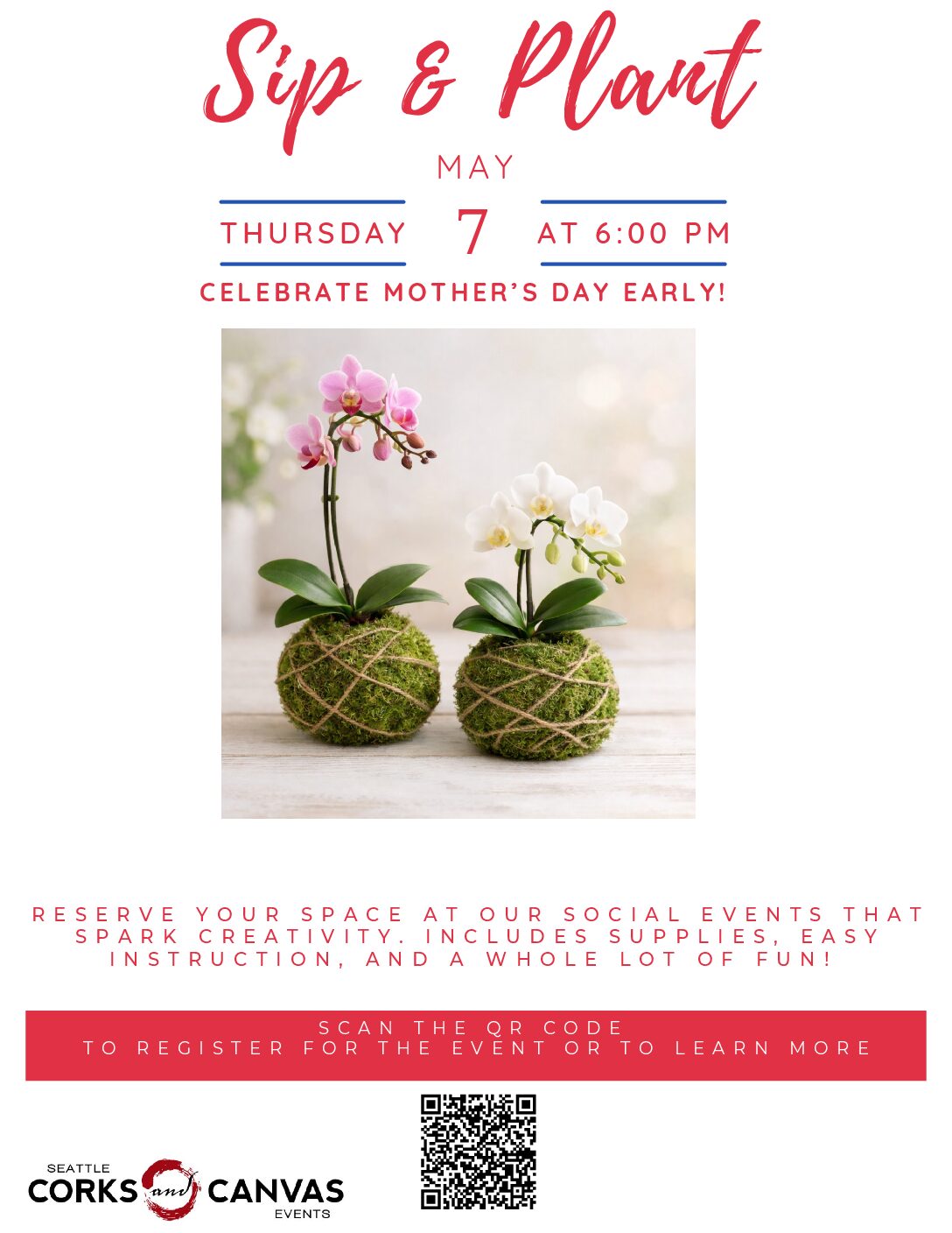 WIT Cellars - Woodinville 19501 144th Ave NE Suite A400, Woodinville, WA, United StatesCelebrate Mom with a hands-on orchid moss ball workshop at WIT Cellars Woodinville! May 7th from 6:00-8:00 PM. $75 per person includes 2 live orchid plants and all supplies. Wine and cheese plates available for purchase. Reserve your spot today!
